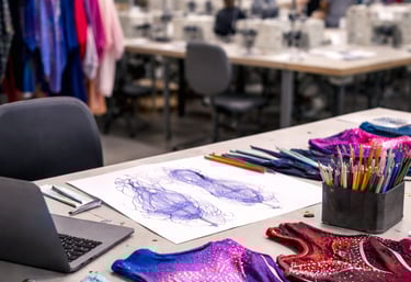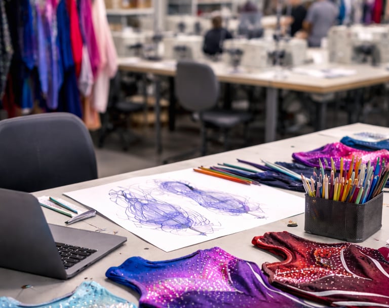 Une fois validé, on lance la fabrication : coupe, assemblage, finitions, strass (si prévu) et contrôle qualité.